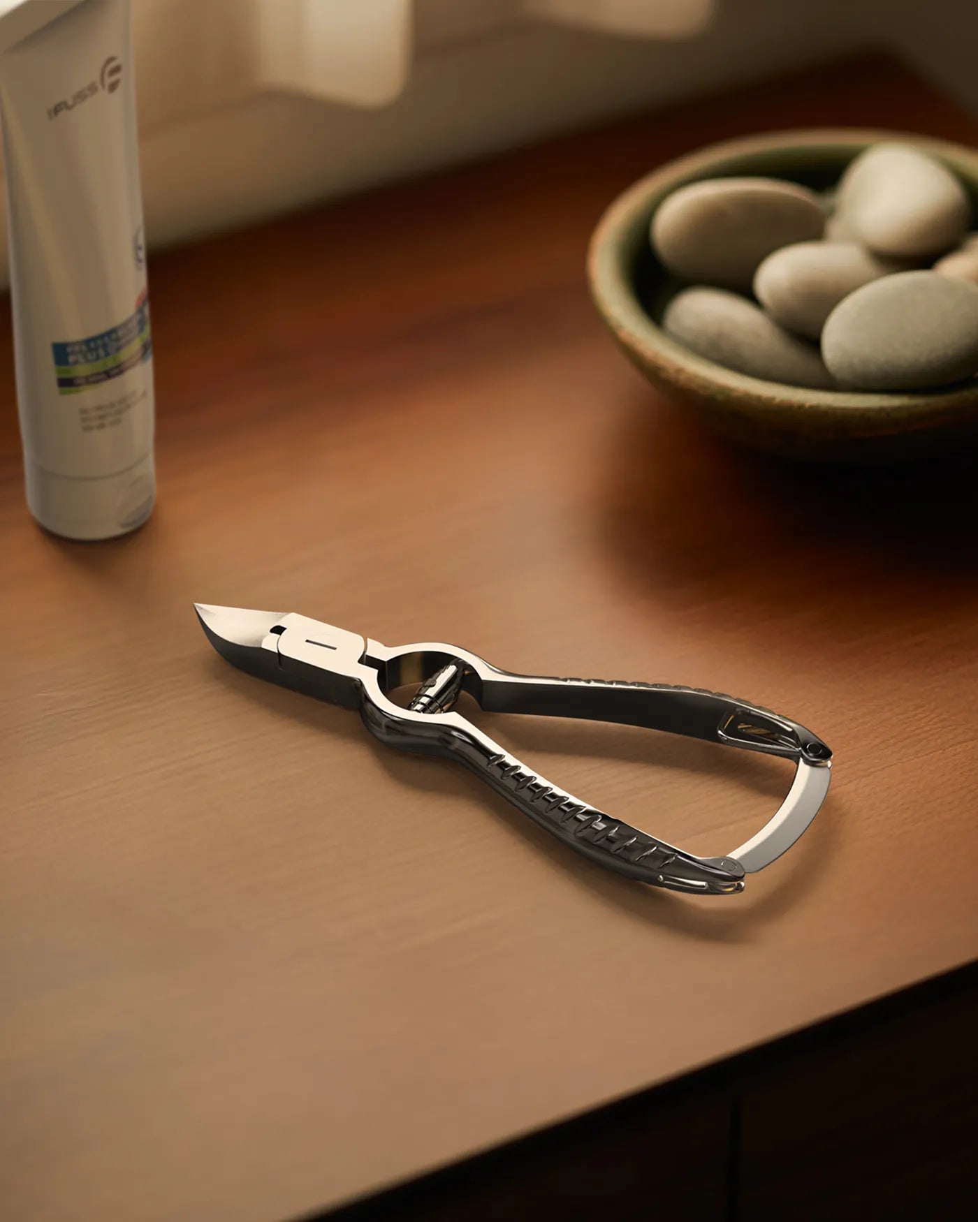 Profi Fußnagelzange Edelstahl mit Kunststoffgriff und Doppelfeder