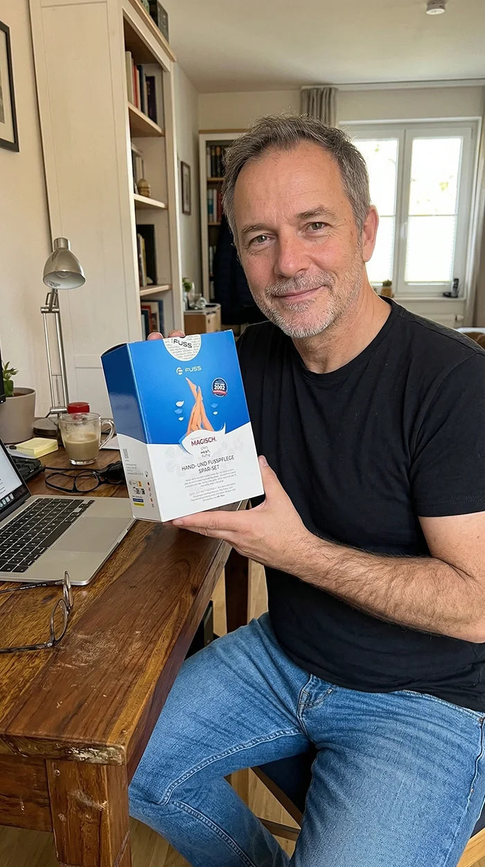 "Es ist schon ein paar Jahre her. Inzwischen mehr als 22 Jahre, als wir uns auf den Weg machten, die Art und Weise wie man Füße von Hornhaut befreit zu revolutionieren. Das war die Geburtsstunde von Mr. Fuss."